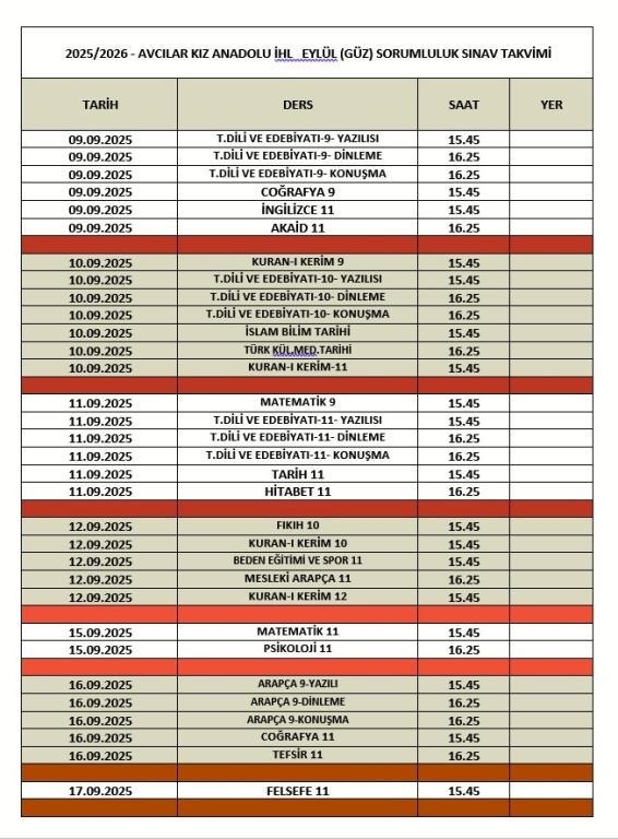Beklemeli öğrencilerimizin mezuniyetinin sağlanması ve 10. 11. 12. sınıf öğrencilerimizin mezuniyete giden yolda zayıf ders engelini aşabilmeleri için sorumluluk sınavlarına katılmaları önemle duyurulur.
